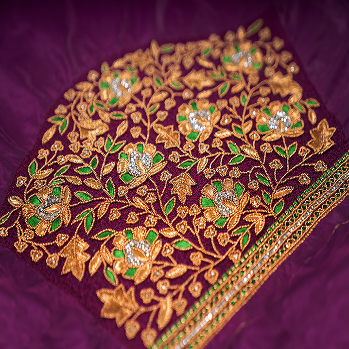 On the other hand, aari work is mainly done for the embellishment of couture wear (sarees, lehenga etc.), bags, footwear etc.